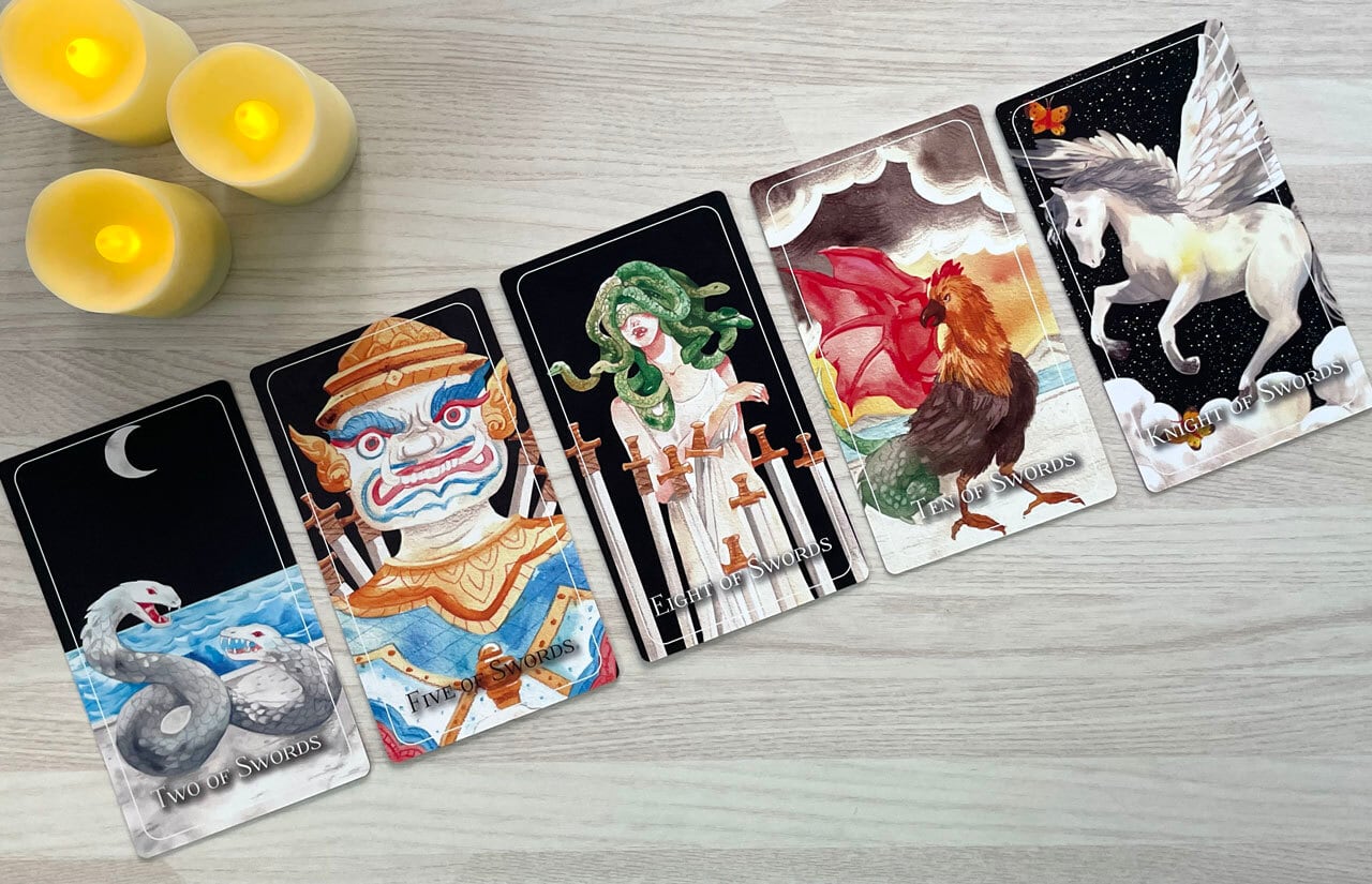 「ソウル・クリーチャーズ・タロット」は、世界中の神話や伝説の豊かなタペストリーからインスピレーションを得ています。東洋の伝承に登場する雄大なドラゴンから、古代ギリシャの神秘的なフェニックスまで、それぞれのカードは神話上の生き物たちの精神と本質を体現しています。占いのツールとしてだけでなく、想像力と精神を魅了する芸術作品としても楽しんでいただけます。